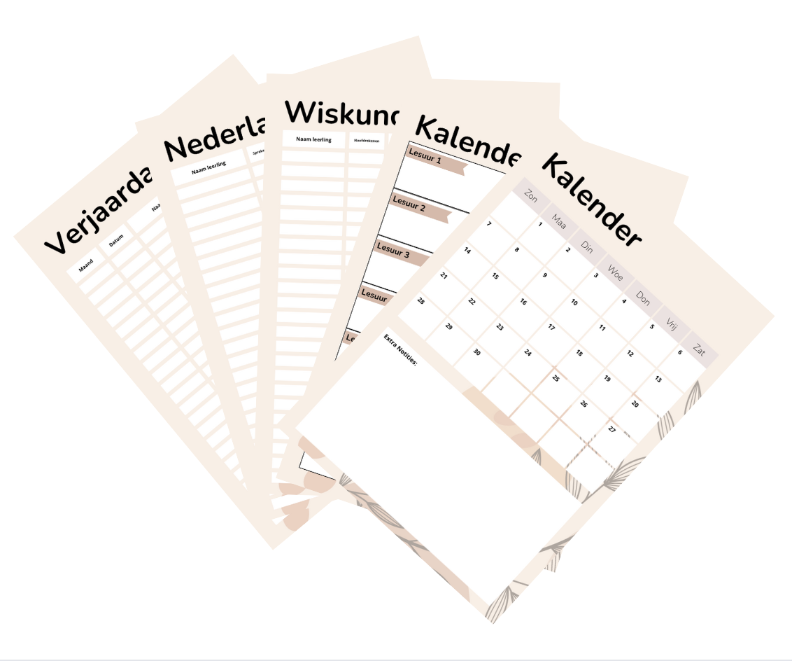 Je vindt hier kant-en-klare items die je digitaal kan aankopen en na betaling via mail ontvangt, maar ook fysiek materiaal zoals stickers. Alles is met zorg ontworpen, en er is altijd ruimte voor maatwerk. Heb je een specifiek klasthema, een ander kleurenpalet of een origineel idee waar je zelf niet aan toekomt? Laat het me weten – ik denk graag met je mee, en als het past, werk ik het met plezier voor je uit.